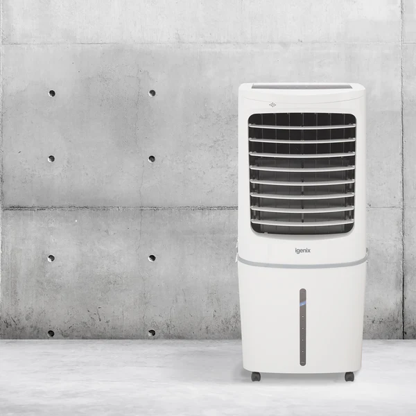 Igenix provides air coolers for the home or office. Some units are multifunctional and include a fan heater and dehumidifier. Users can control the units manually, using a remote, voice commands, or the mobile app.