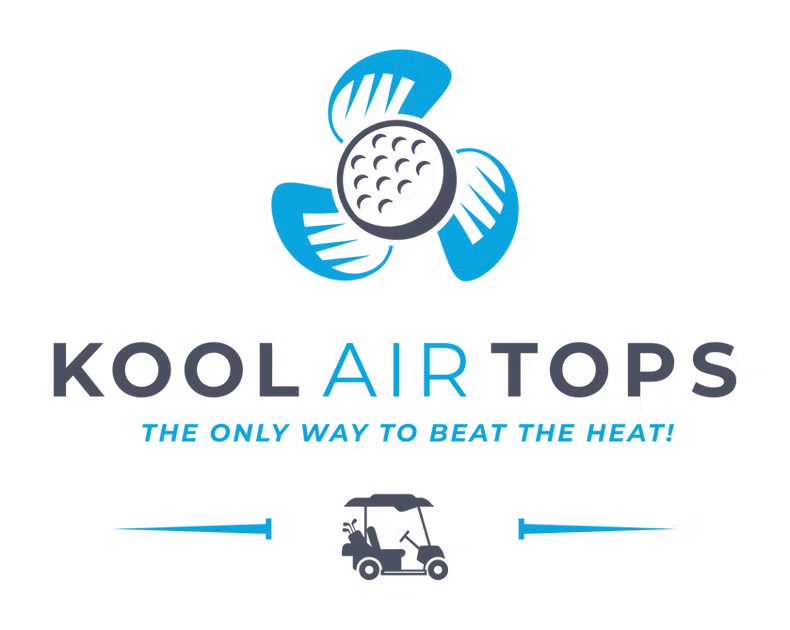Kool Air Tops are roof-mounted evaporative cooling systems designed specifically for golf carts. Each unit replaces or upgrades the cart’s existing roof and uses a built-in blower, water filter, and directional vents to push cooled air toward both passengers without producing mist. The system runs directly from the cart’s 12V batteries and is custom-fit to the exact make and model.
